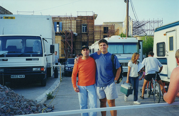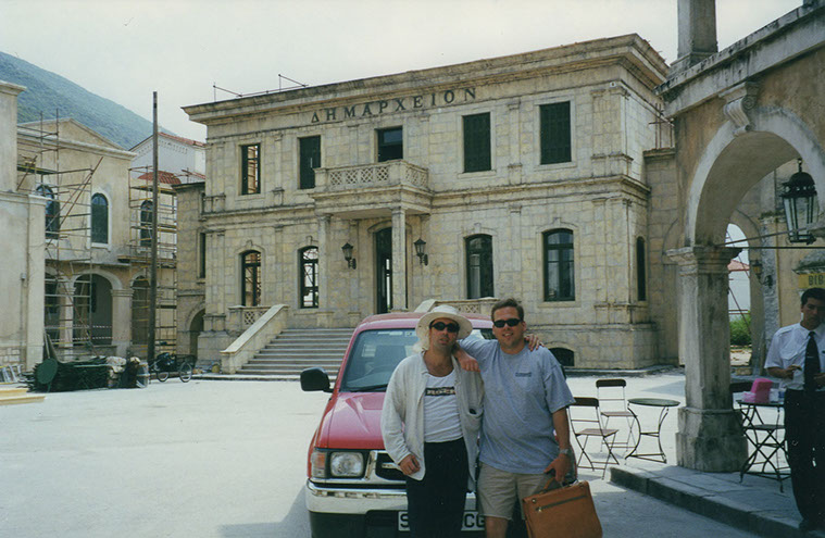 This film was shot on the Greek island of Kefallonia. A small, but green island just west of the mainland. 3 months of heat at 40+C almost did us in. Working straight through the blazing sun, with not a cloud in the sky in military uniforms. A challenge for cast and crew. Tough film to work on despite the glorious Greek effect.