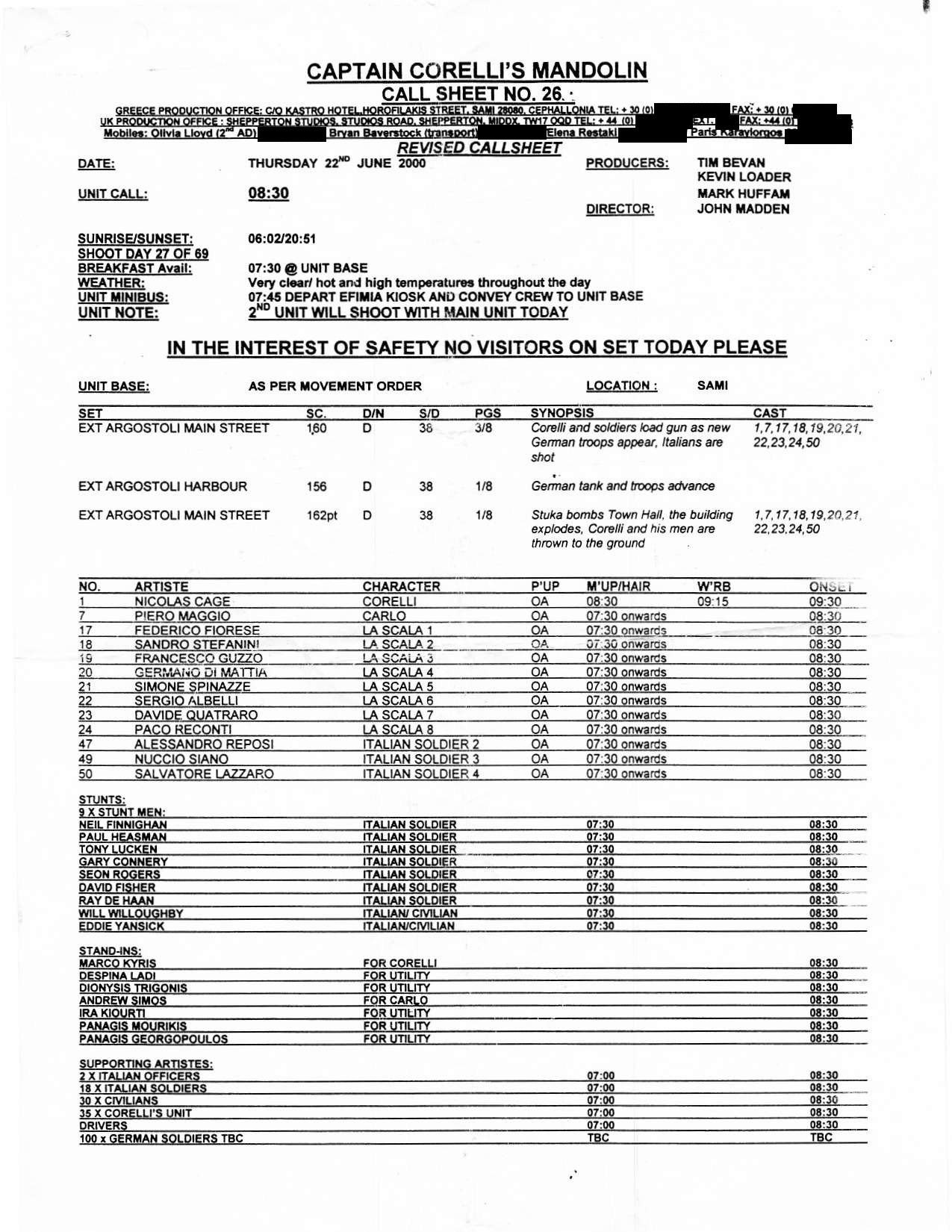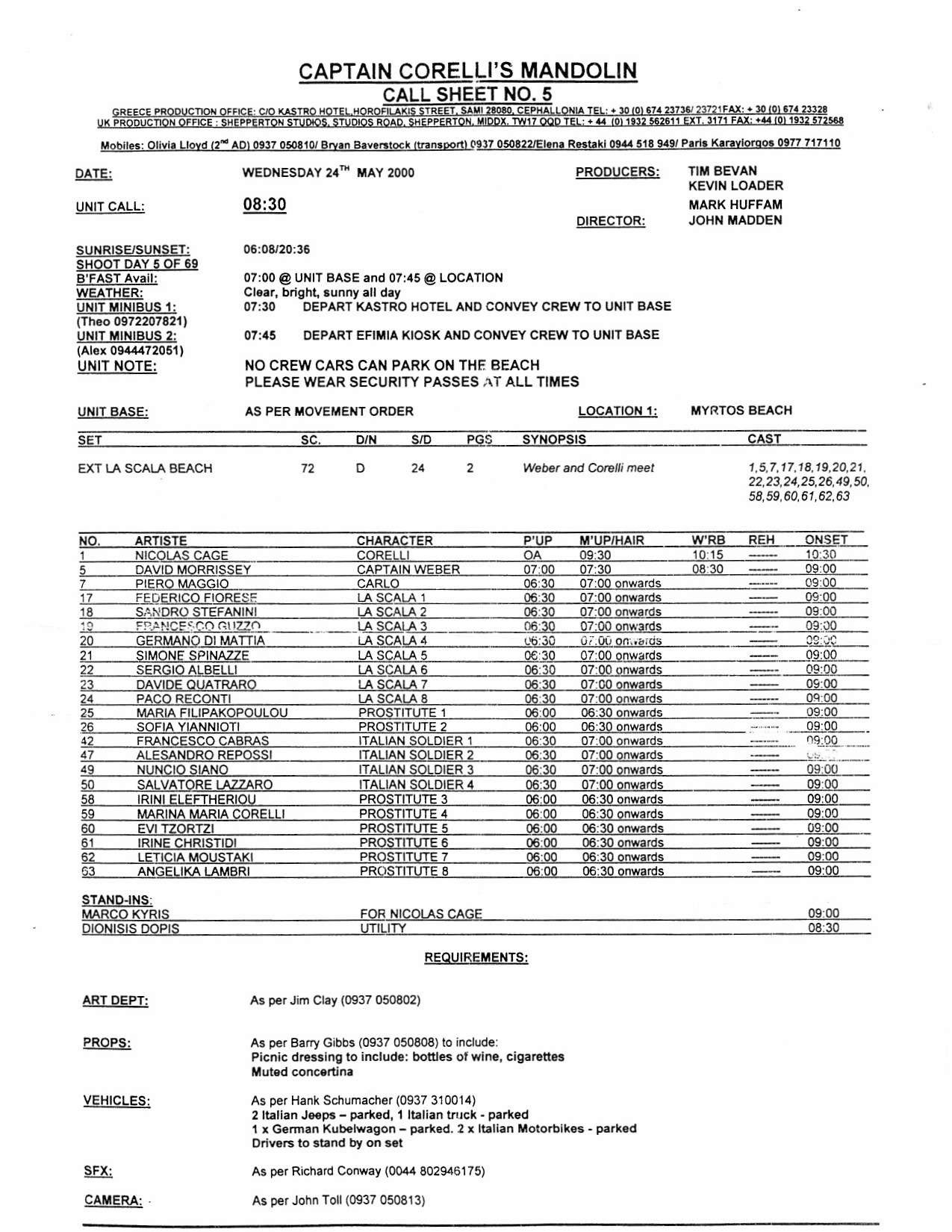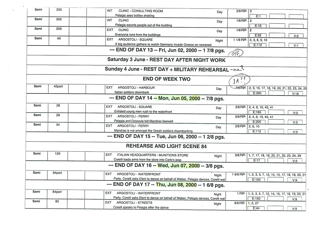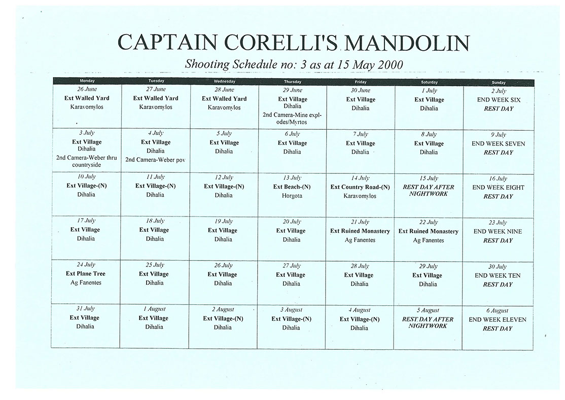 This film was shot on the Greek island of Kefallonia. A small, but green island just west of the mainland. 3 months of heat at 40+C almost did us in. Working straight through the blazing sun, with not a cloud in the sky in military uniforms. A challenge for cast and crew. Tough film to work on despite the glorious Greek effect.