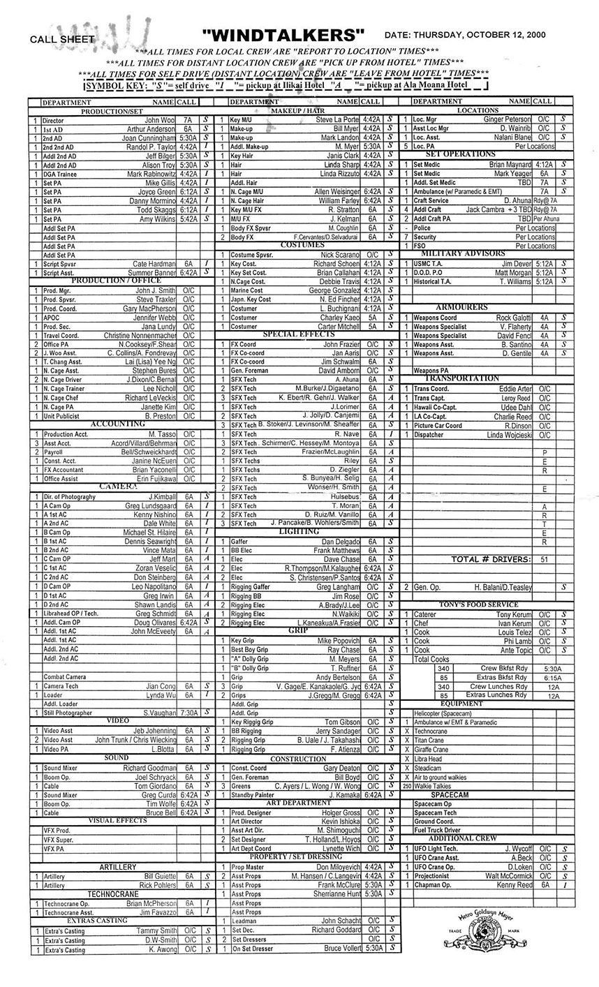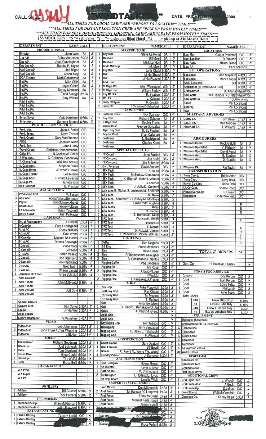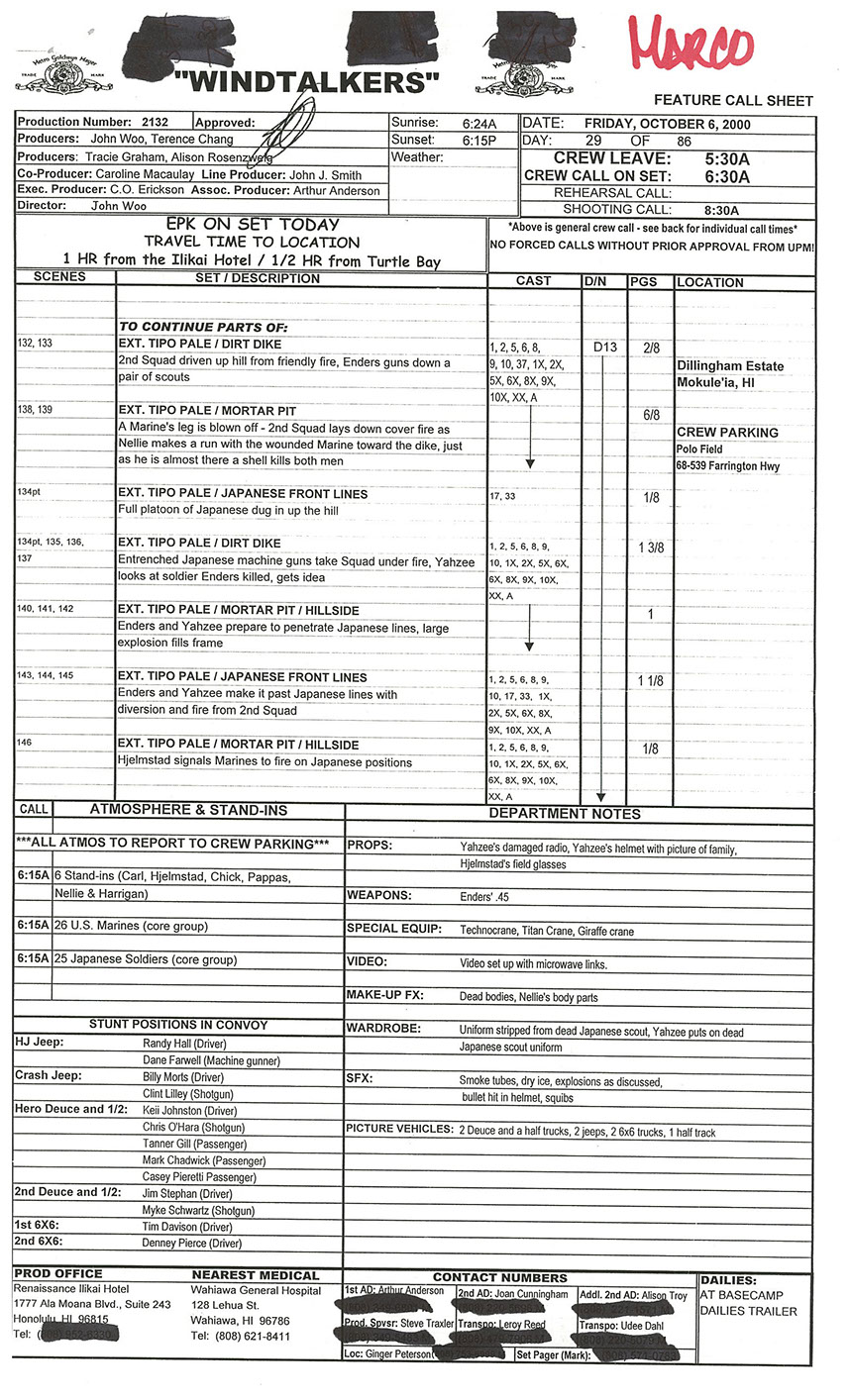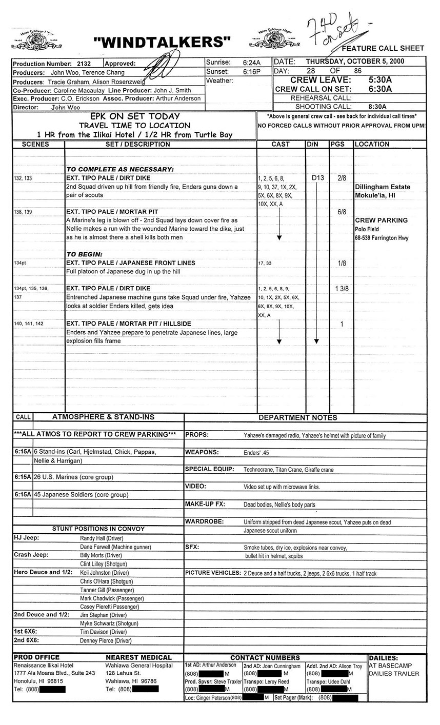 A very lengthy and exhausting shoot from the get go this one was. Serious war scenario throughout this movie. Truly an epic style, but failed to impress at the box office. Hundreds of stunt guys and military extras too performed in this film. So many explosions and gun firing kept me in ear plugs the whole time. Shot in both Honolulu, Hawaii, and Santa Clarita, Cali area too. Just a massive budget, and crew to match. special effects, teamsters, gun wranglers making sure all are safe and transported properly. Check out the credits here.