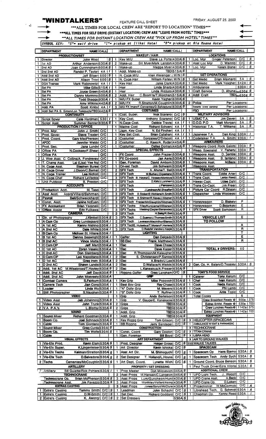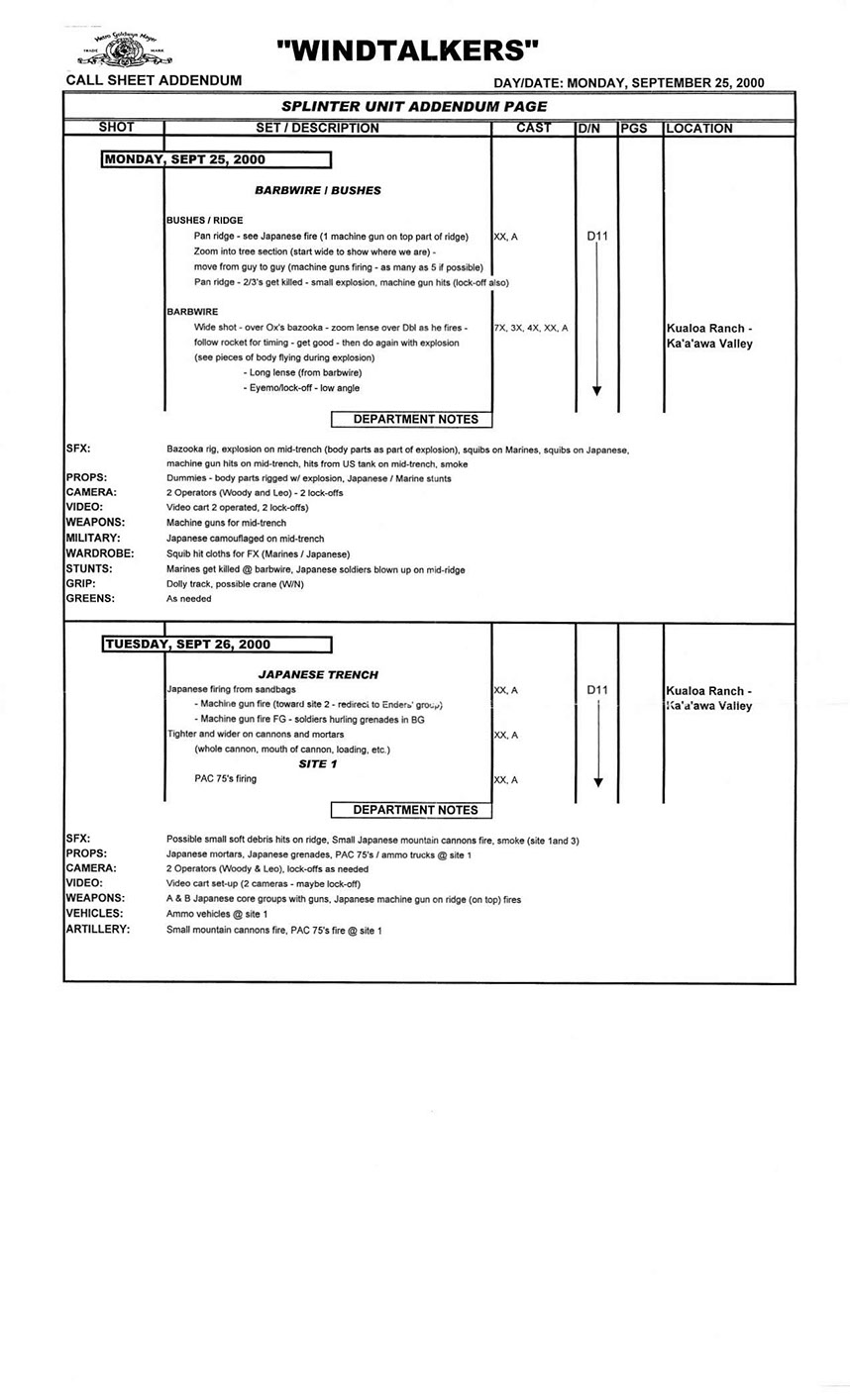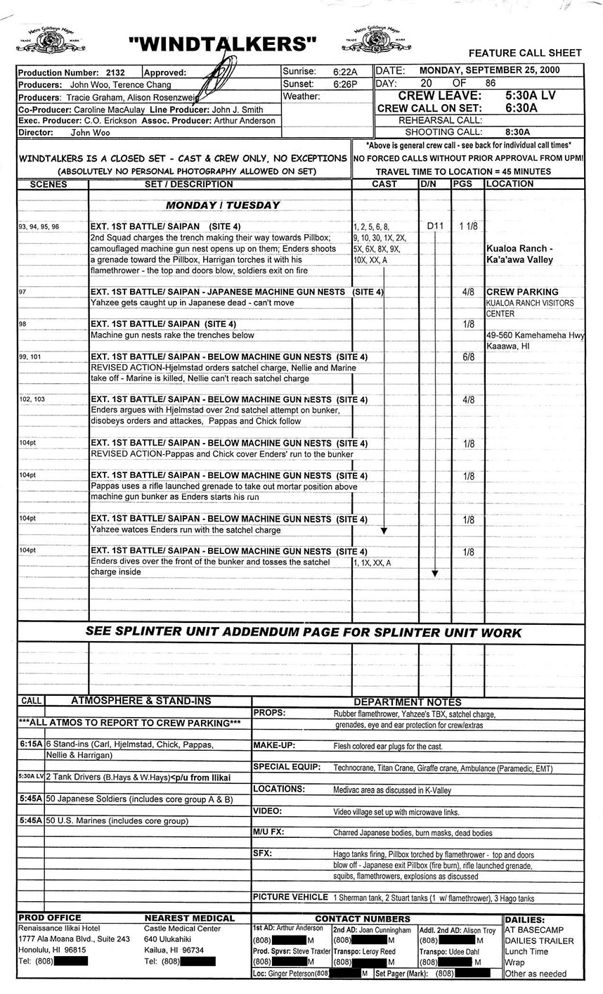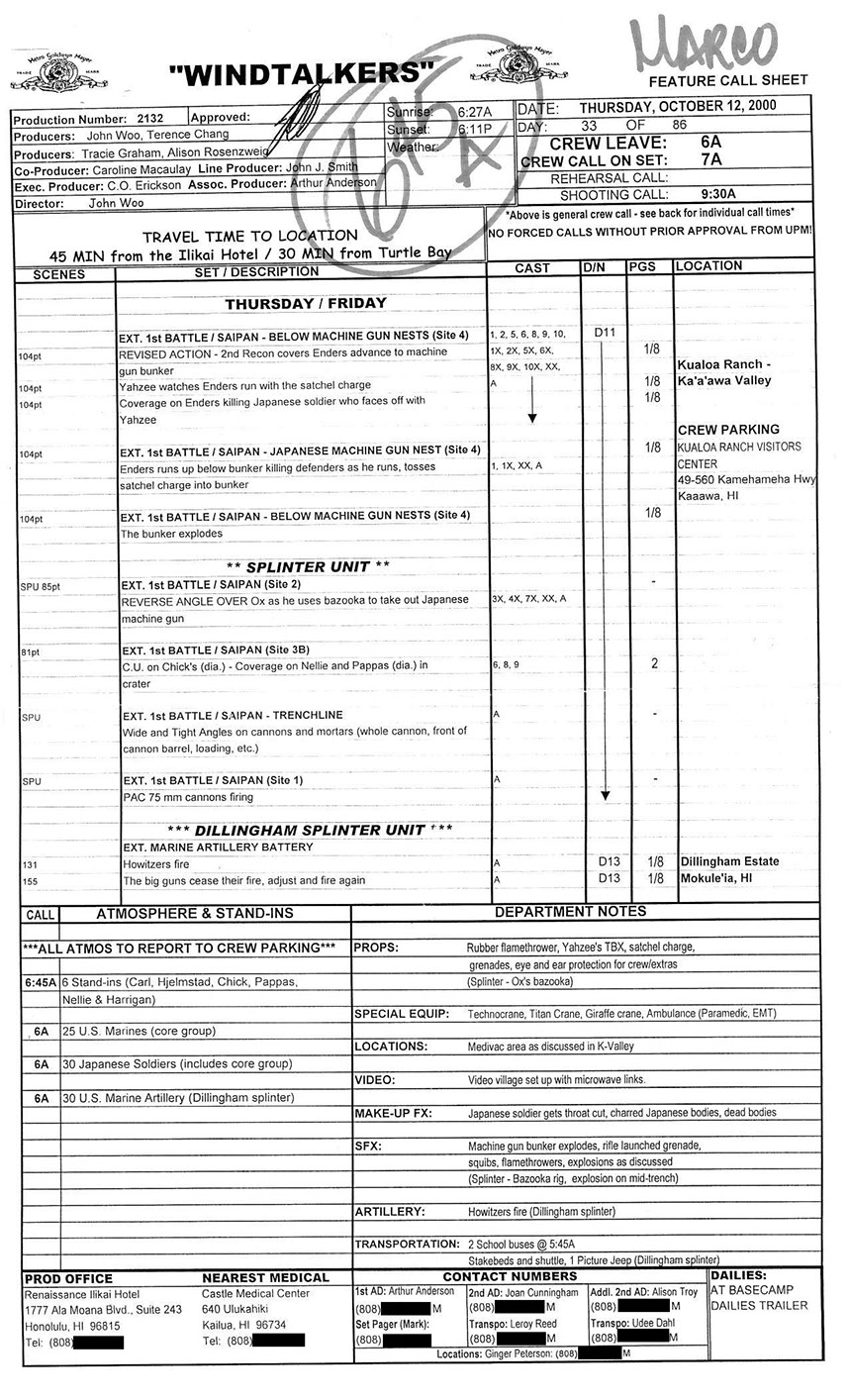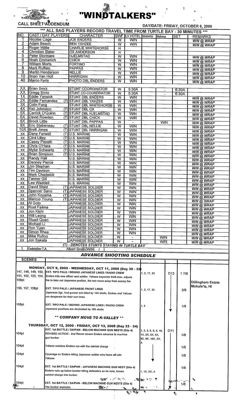 A very lengthy and exhausting shoot from the get go this one was. Serious war scenario throughout this movie. Truly an epic style, but failed to impress at the box office. Hundreds of stunt guys and military extras too performed in this film. So many explosions and gun firing kept me in ear plugs the whole time. Shot in both Honolulu, Hawaii, and Santa Clarita, Cali area too. Just a massive budget, and crew to match. special effects, teamsters, gun wranglers making sure all are safe and transported properly. Check out the credits here.