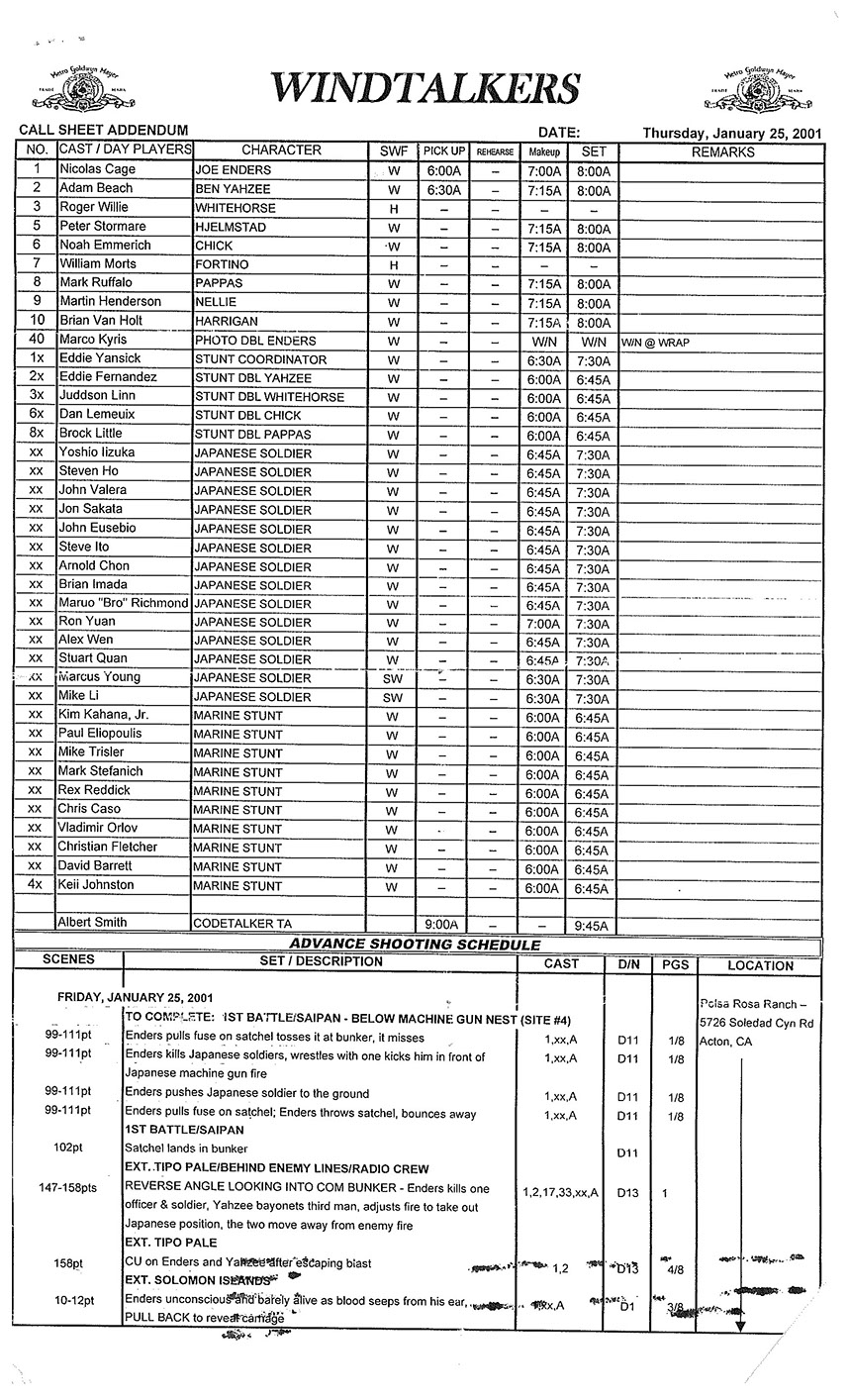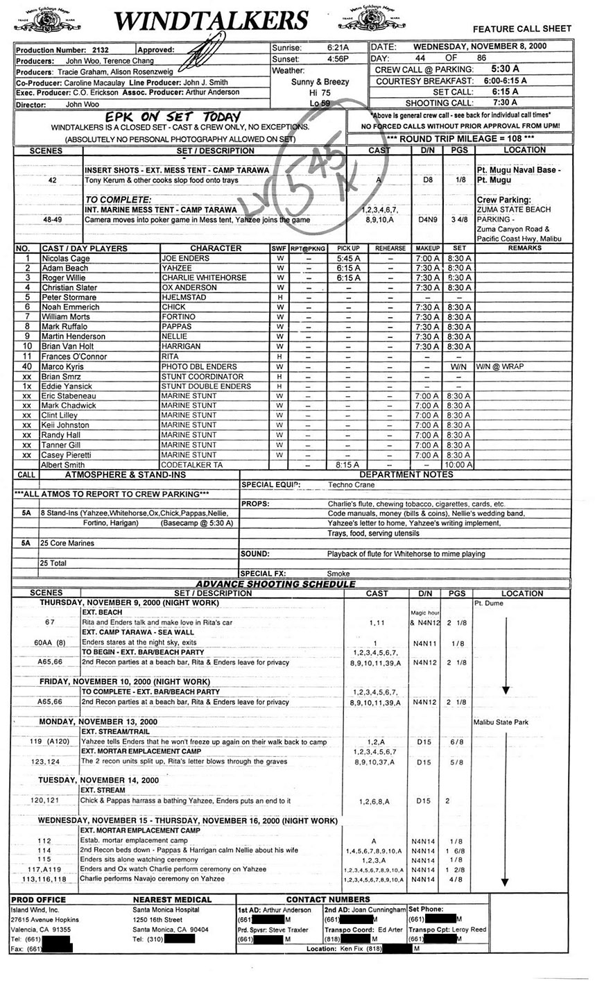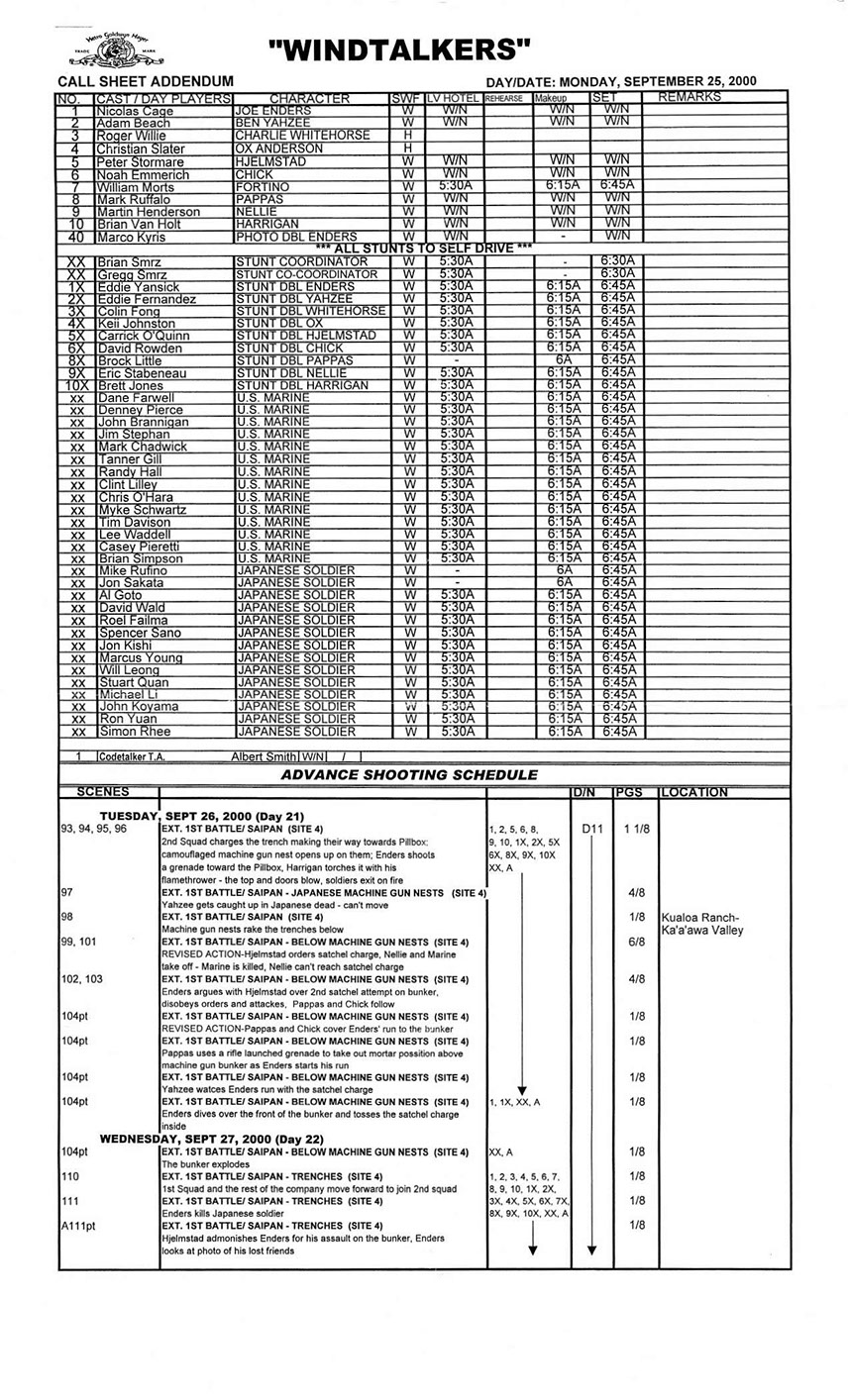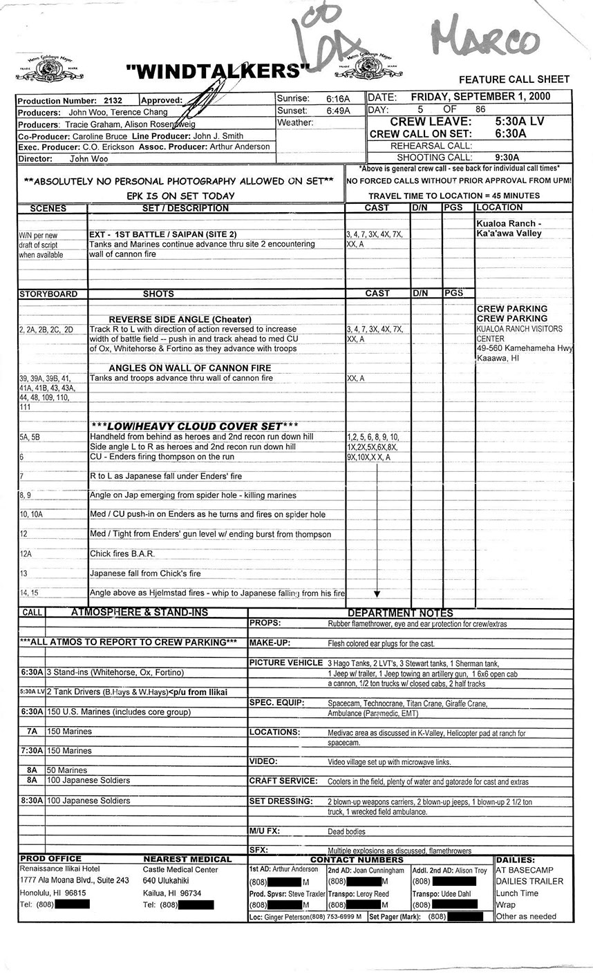 A very lengthy and exhausting shoot from the get go this one was. Serious war scenario throughout this movie. Truly an epic style, but failed to impress at the box office. Hundreds of stunt guys and military extras too performed in this film. So many explosions and gun firing kept me in ear plugs the whole time. Shot in both Honolulu, Hawaii, and Santa Clarita, Cali area too. Just a massive budget, and crew to match. special effects, teamsters, gun wranglers making sure all are safe and transported properly. Check out the credits here.