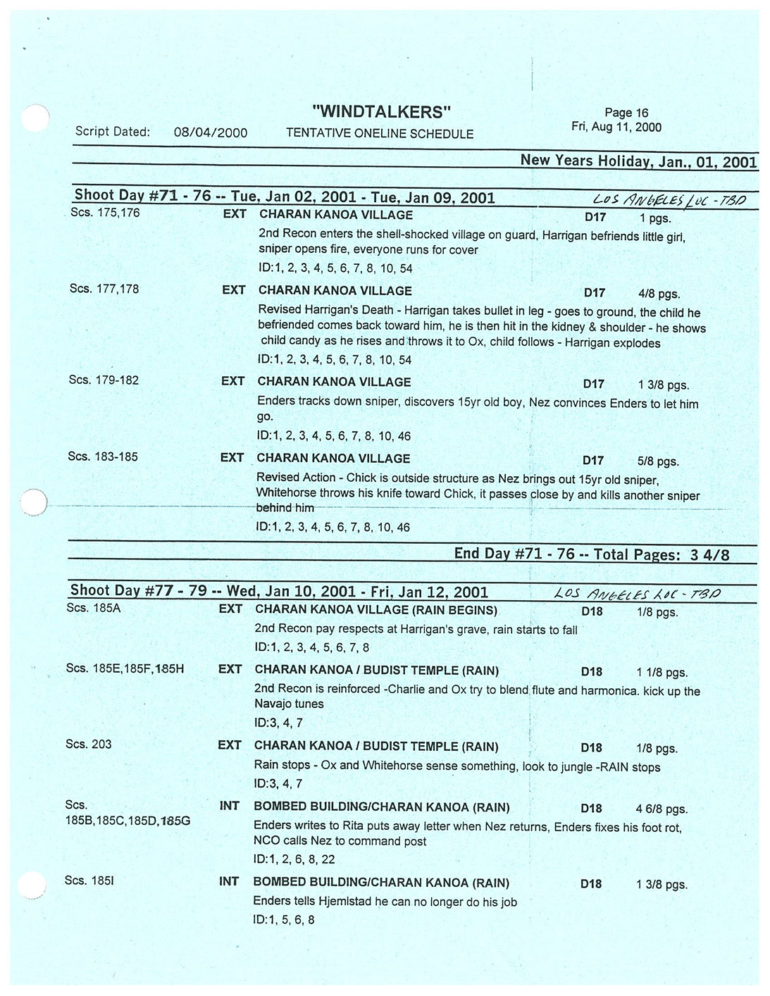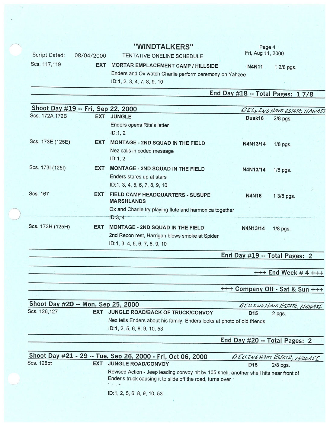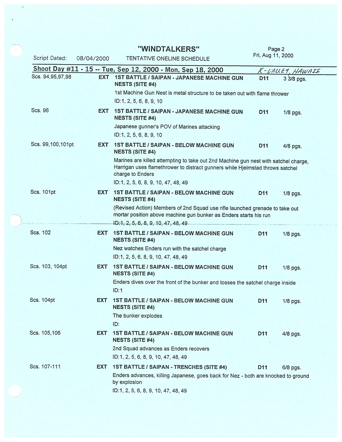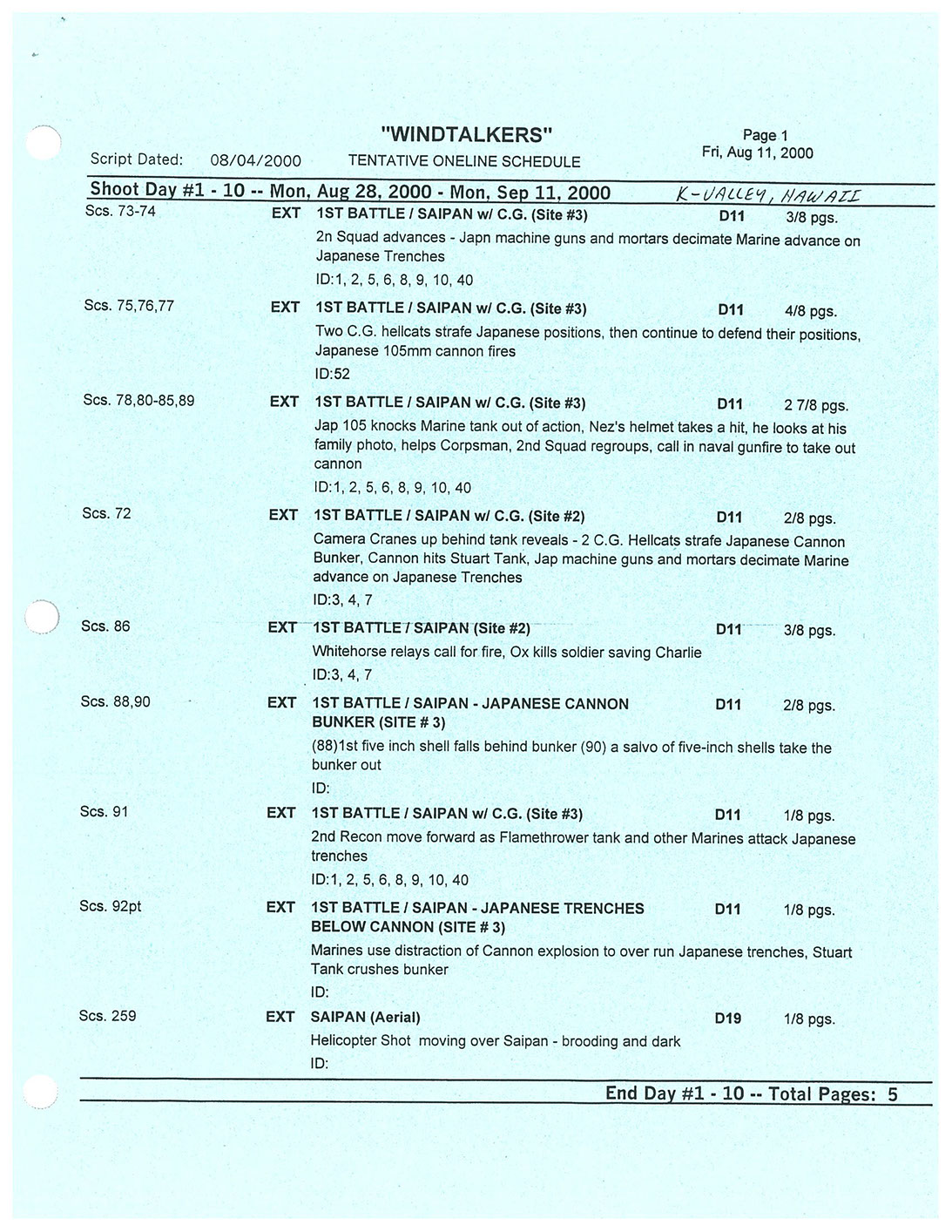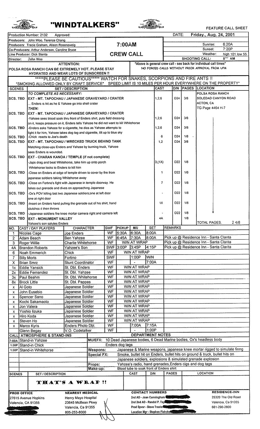 A very lengthy and exhausting shoot from the get go this one was. Serious war scenario throughout this movie. Truly an epic style, but failed to impress at the box office. Hundreds of stunt guys and military extras too performed in this film. So many explosions and gun firing kept me in ear plugs the whole time. Shot in both Honolulu, Hawaii, and Santa Clarita, Cali area too. Just a massive budget, and crew to match. special effects, teamsters, gun wranglers making sure all are safe and transported properly. Check out the credits here.