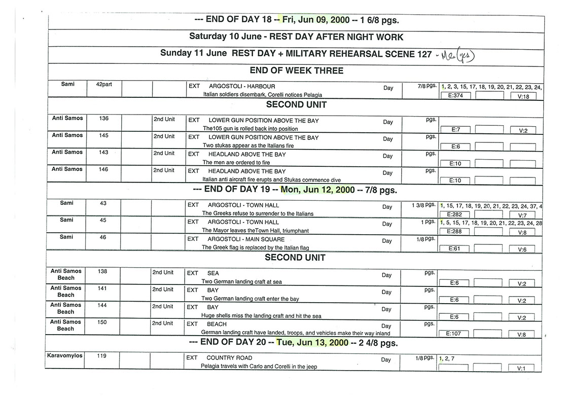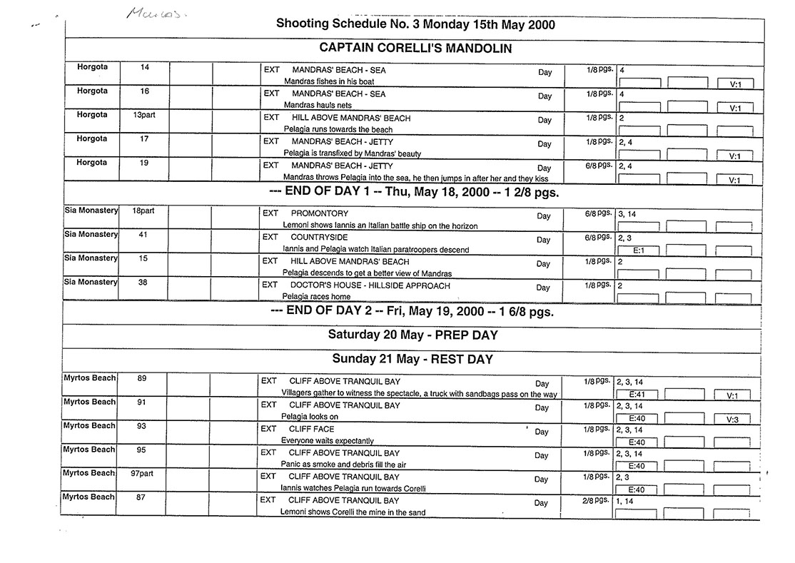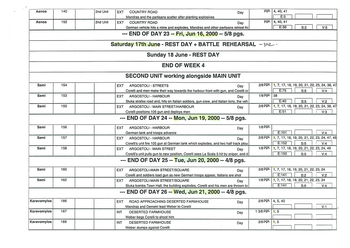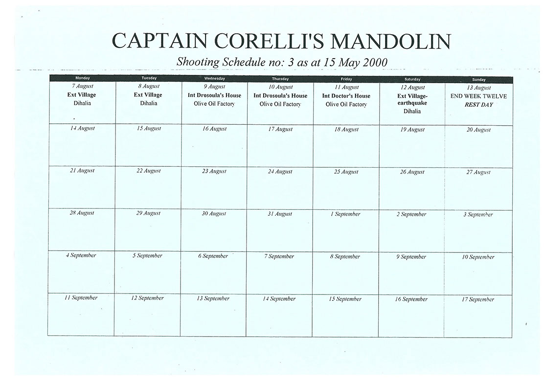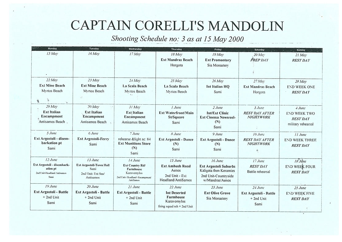 This film was shot on the Greek island of Kefallonia. A small, but green island just west of the mainland. 3 months of heat at 40+C almost did us in. Working straight through the blazing sun, with not a cloud in the sky in military uniforms. A challenge for cast and crew. Tough film to work on despite the glorious Greek effect.