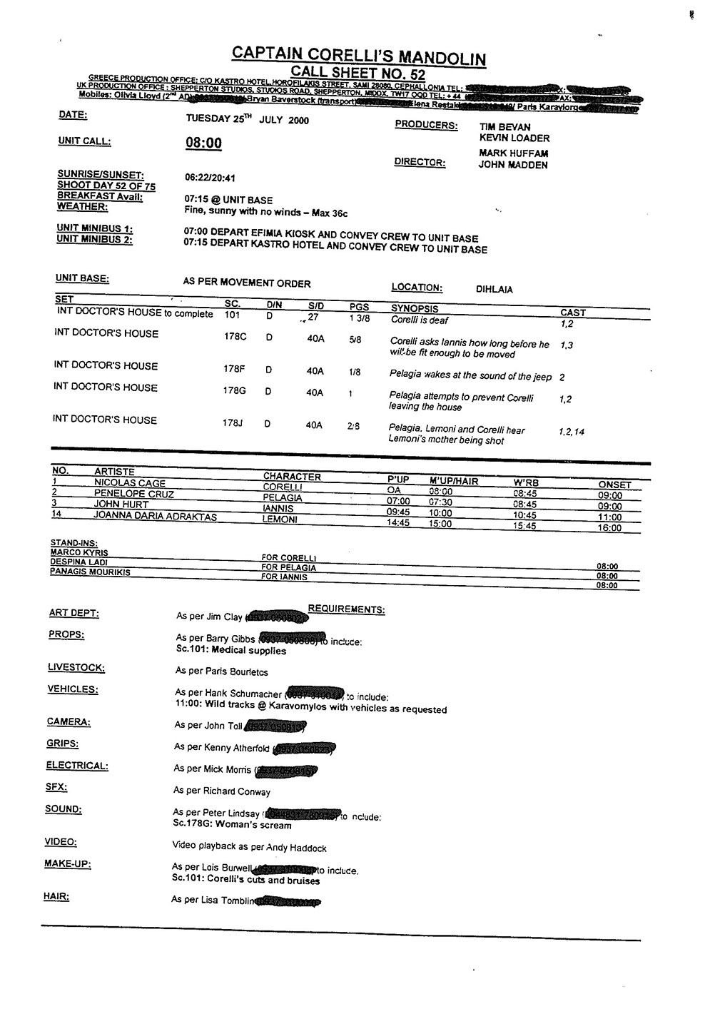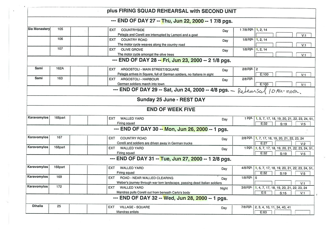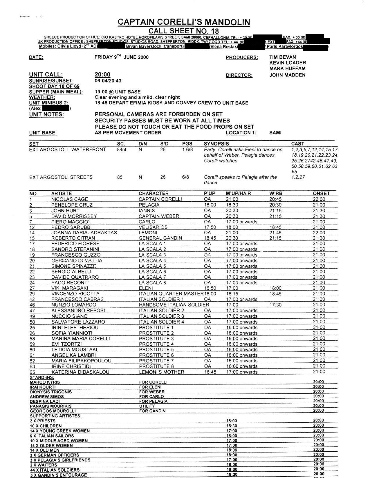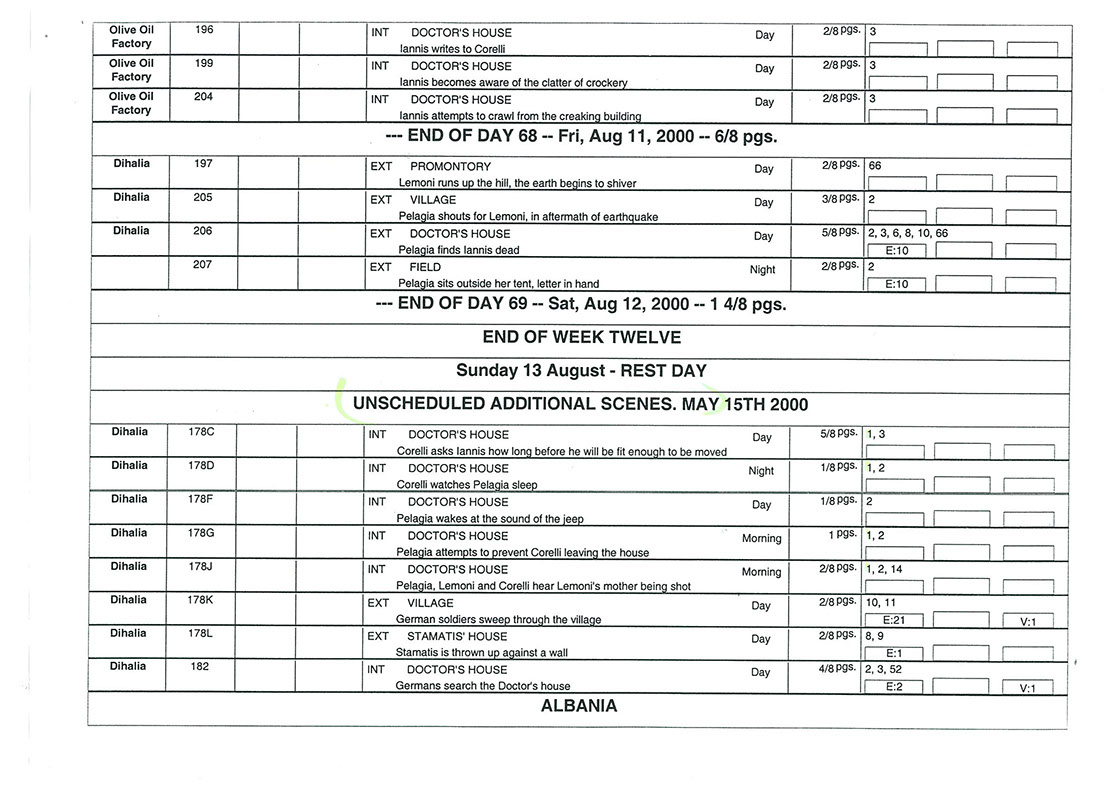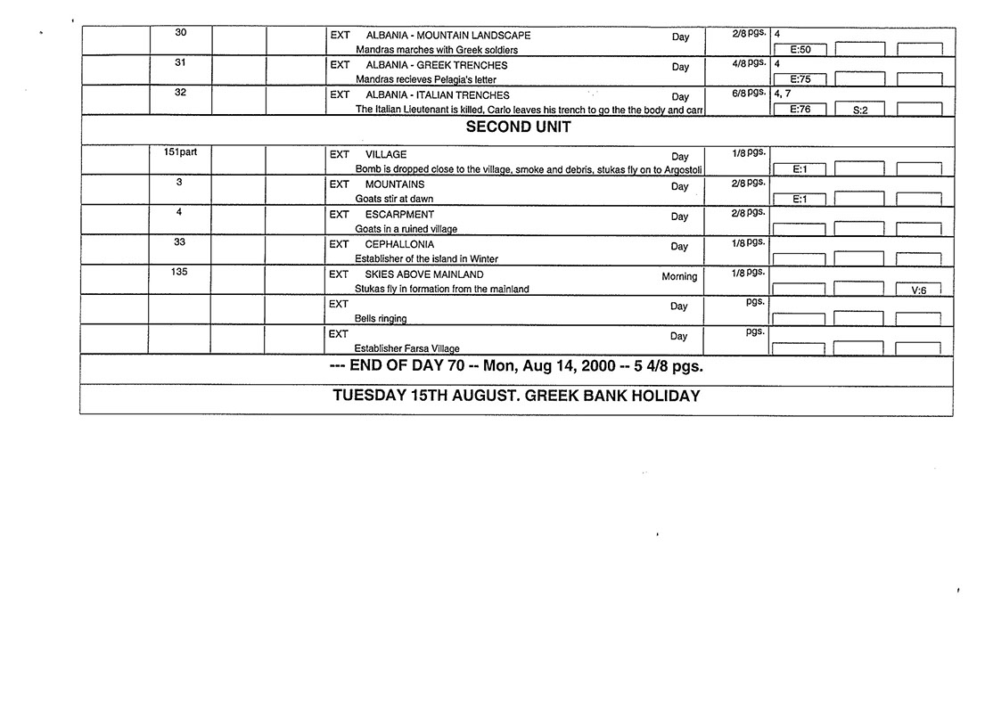 This film was shot on the Greek island of Kefallonia. A small, but green island just west of the mainland. 3 months of heat at 40+C almost did us in. Working straight through the blazing sun, with not a cloud in the sky in military uniforms. A challenge for cast and crew. Tough film to work on despite the glorious Greek effect.