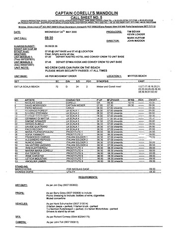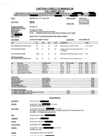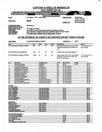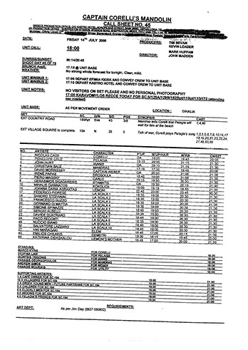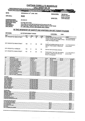 This film was shot on the Greek island of Kefallonia. A small, but green island just west of the mainland. 3 months of heat at 40+C almost did us in. Working straight through the blazing sun, with not a cloud in the sky in military uniforms. A challenge for cast and crew. Tough film to work on despite the glorious Greek effect.